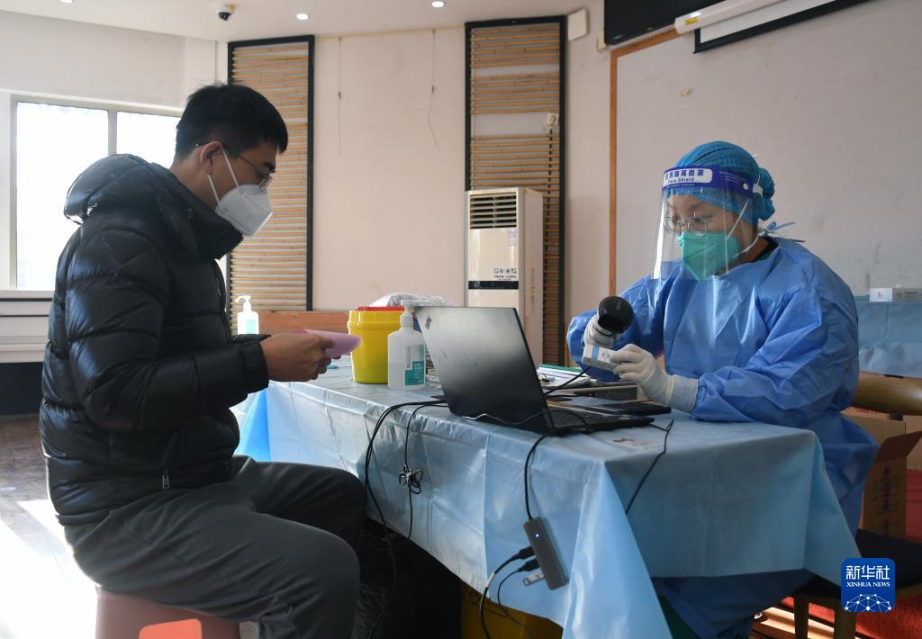 12月17日,在北京市海淀區田村路街道新冠疫苗臨時接種點,醫護人員掃描鼻噴流感病毒載體新冠肺炎疫苗,為市民接種做準備。