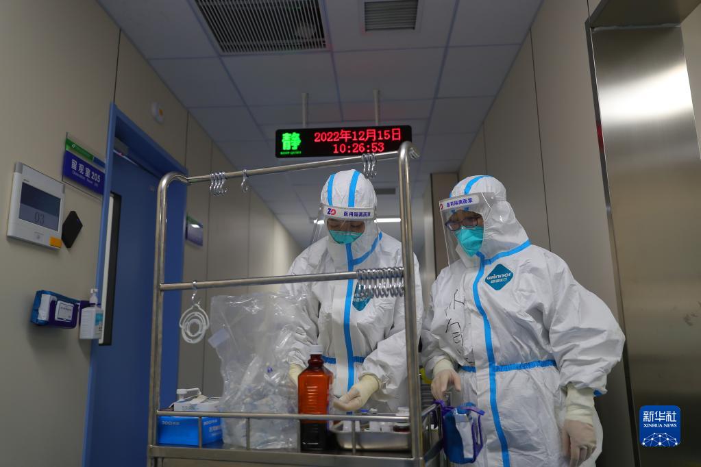 12月15日,在中國醫(yī)科大學附屬盛京醫(yī)院南湖院區(qū)發(fā)熱門診,值班護士在給患者配藥。