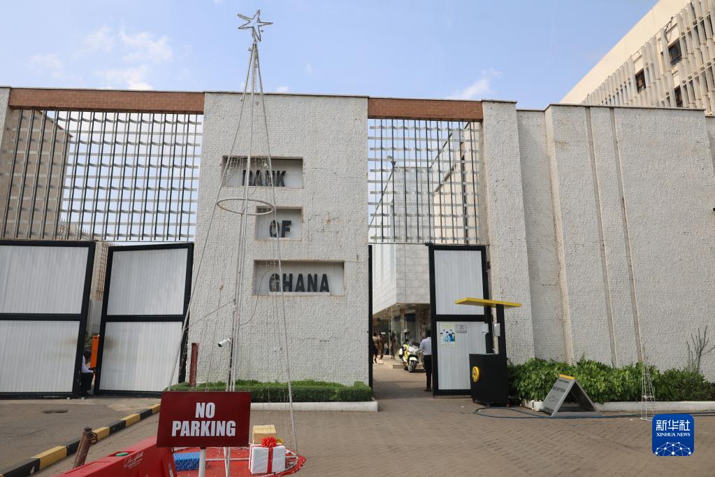 這是位于加納首都阿克拉的加納央行入口(12月20日攝)。