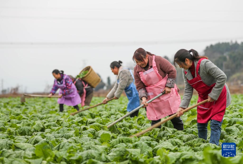 12月20日,貴州省黔東南苗族侗族自治州岑鞏縣大有鎮(zhèn)臘恰畈村農(nóng)民在芥菜種植基地松土。