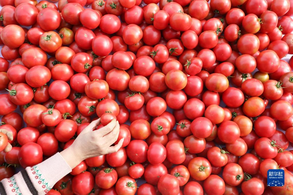 12月21日,河北省唐山市豐潤區任各莊鎮白沫子村農民在分揀剛采摘的西紅柿。