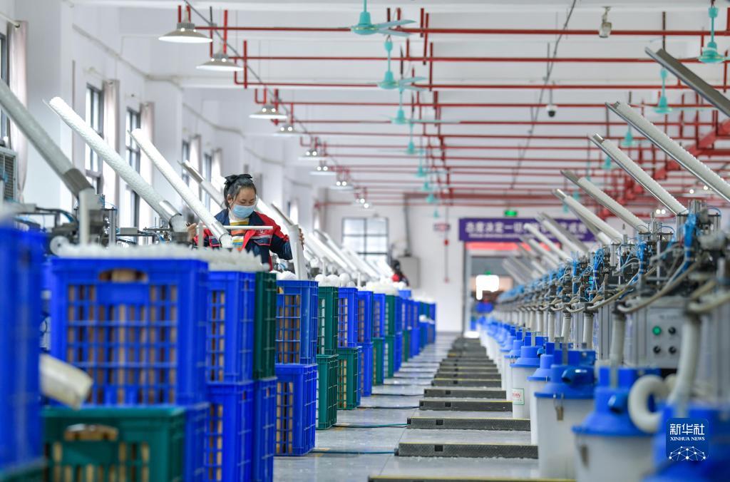在錦屏經濟開發區貴州亞獅龍體育文化產業發展有限公司羽毛球生產基地,工人在生產羽毛球(12月19日攝)。