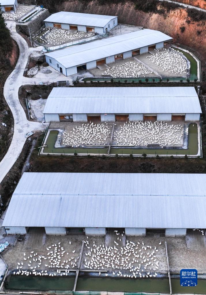 這是12月19日拍攝的貴州省錦屏縣銅鼓鎮馬臺生態種鵝養殖基地(無人機照片)。