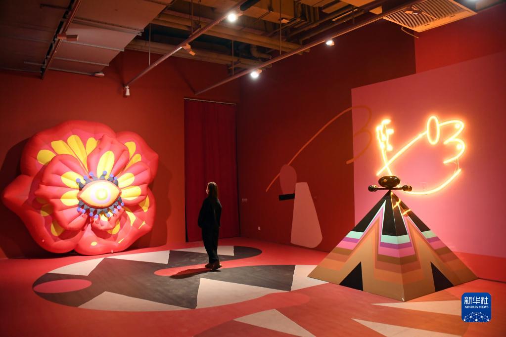 12月21日在北京時代美術館拍攝的《聲·生》當代藝術展中展出的藝術作品。