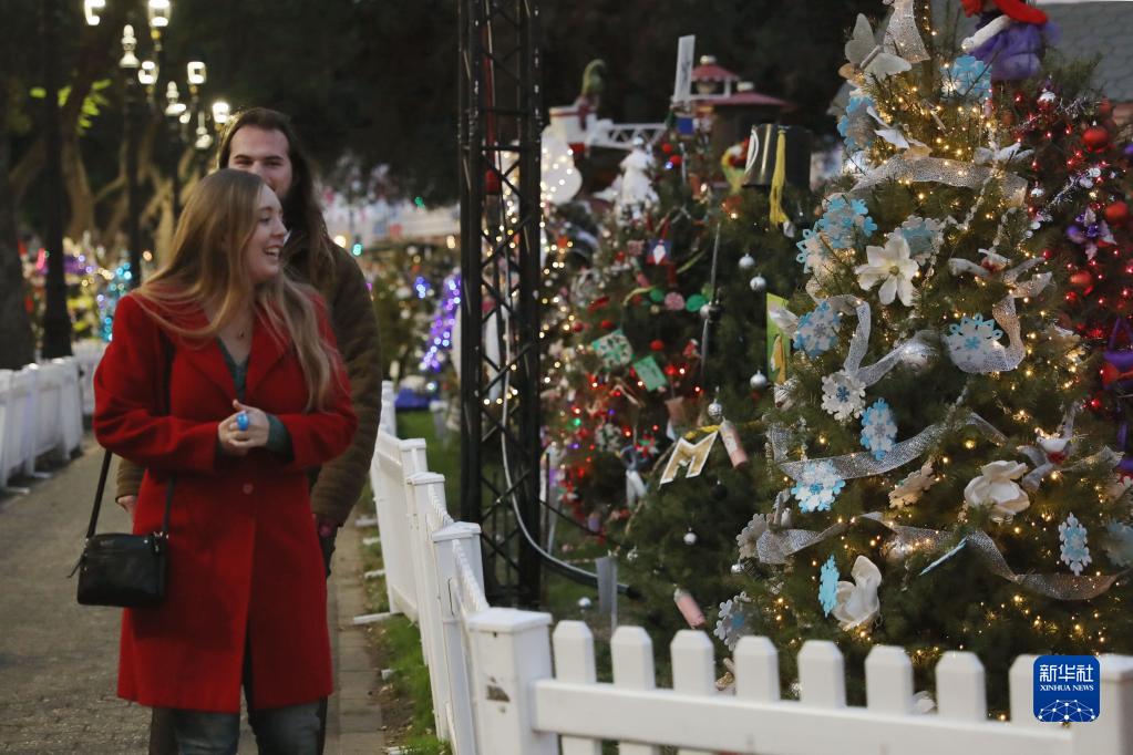 12月20日,在美國舊金山灣區圣何塞,人們觀賞圣誕主題裝飾。