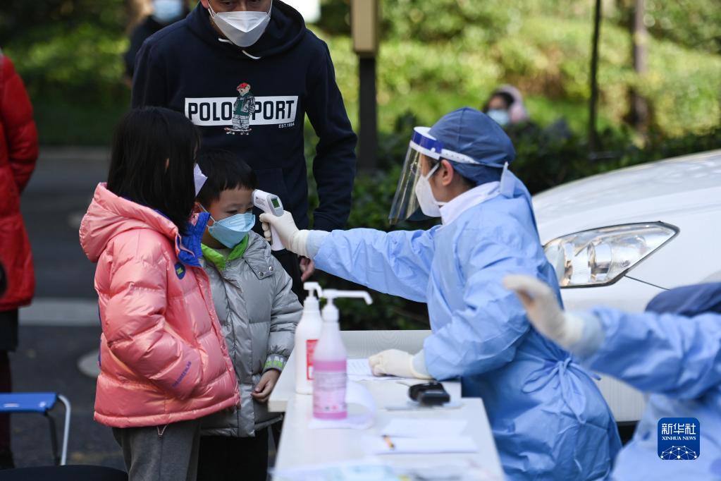 12月21日,杭州市西湖區留下街道社區衛生服務中心的醫護人員在和家園南社區為發熱居民測溫、診療。