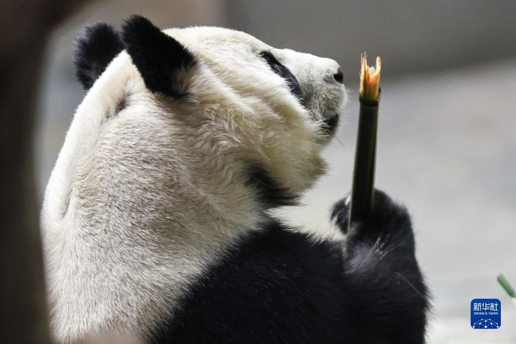12月22日,在西寧熊貓館,大熊貓在吃竹子。