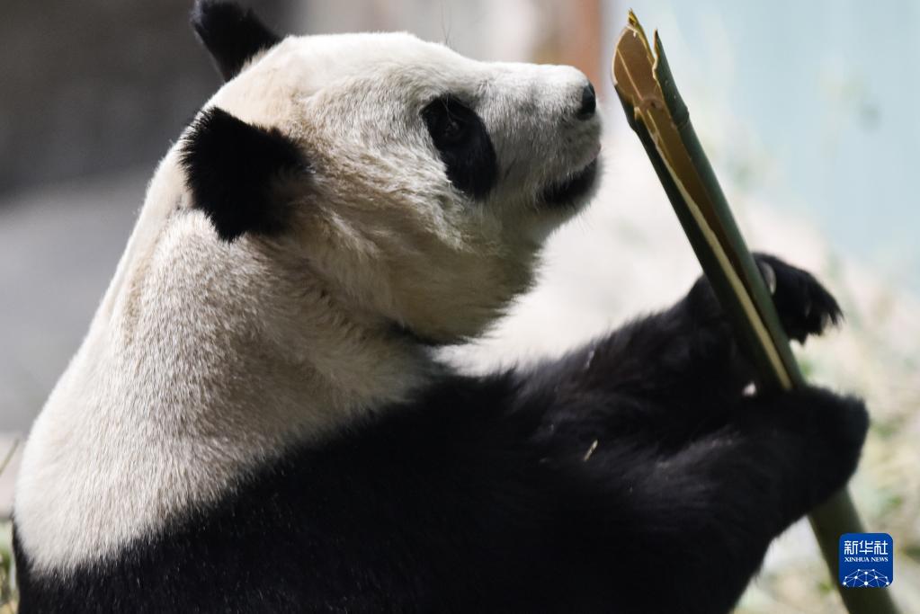 12月22日,在西寧熊貓館,大熊貓在吃竹子。