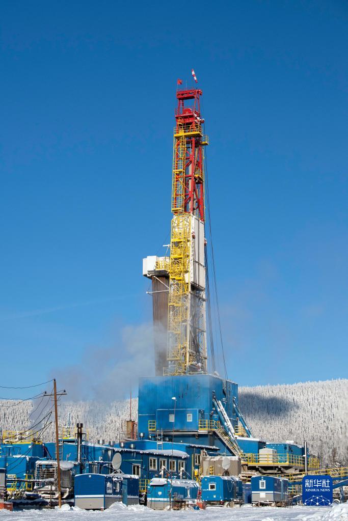 這是12月18日在俄羅斯伊爾庫茨克州拍攝的科維克塔天然氣氣田鉆井平臺(tái)。