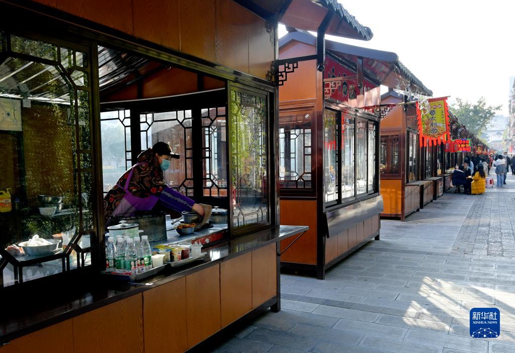12月21日,在宣恩縣民族風情街,經營者在“地攤小屋”售賣食品。