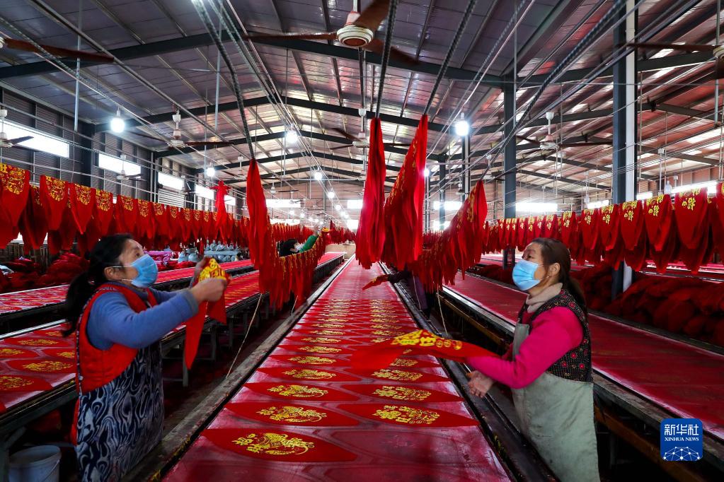 12月22日,安徽省五河縣頭鋪鎮(zhèn)一燈籠加工作坊,工作人員忙著制作各種款式燈籠。