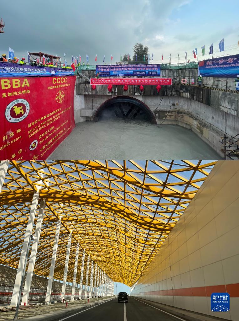 上圖:這是2021年10月7日在孟加拉國吉大港市拍攝的卡納普里河底隧道項目施工現場。新華社記者 劉春濤 攝