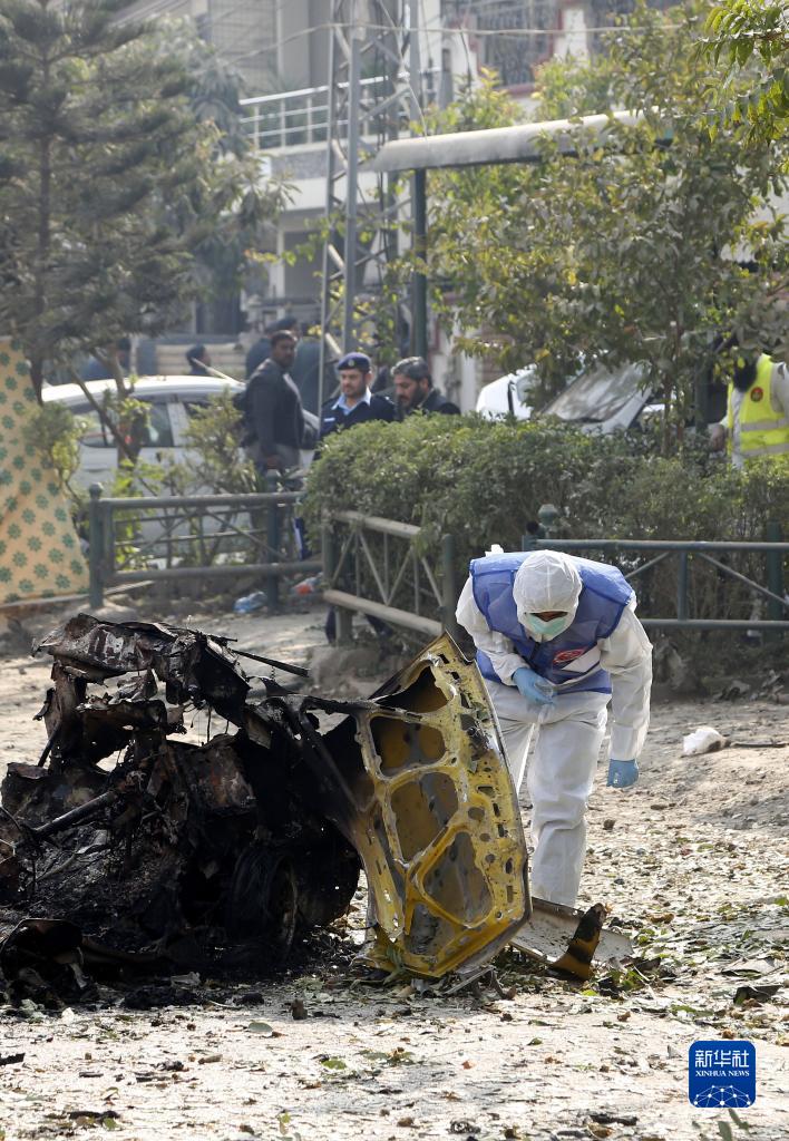 12月23日,安全人員在巴基斯坦伊斯蘭堡的自殺式爆炸襲擊事件現場調查。