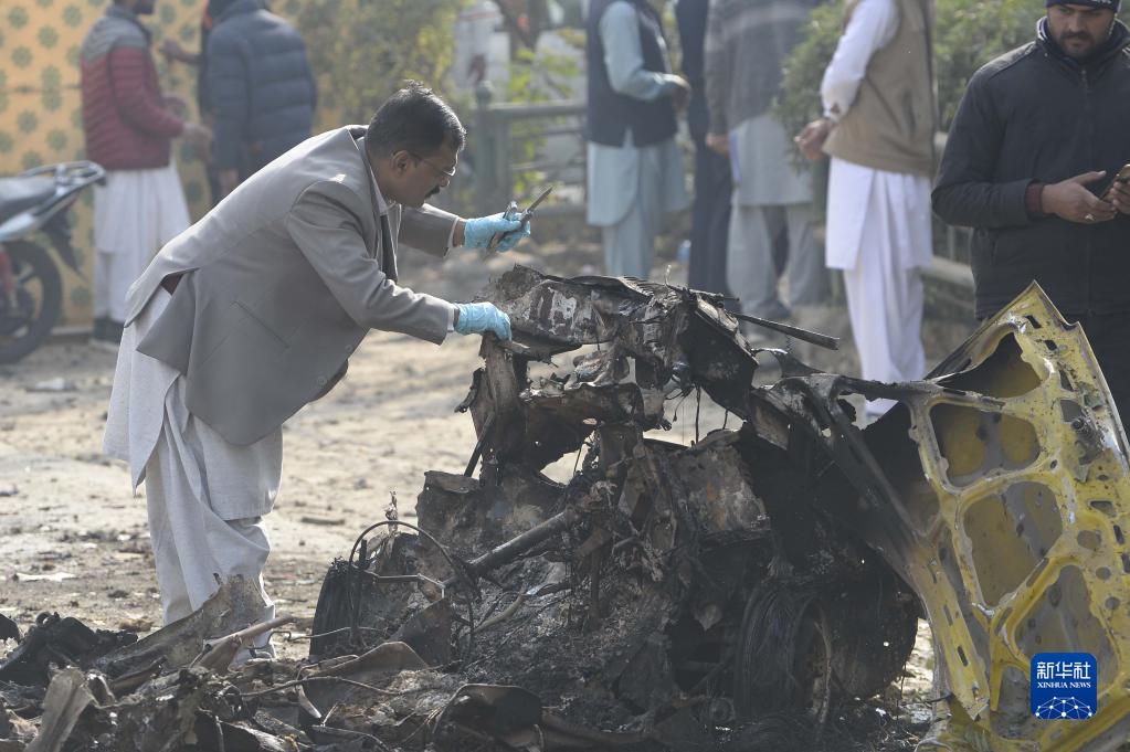 12月23日,安全人員在巴基斯坦伊斯蘭堡的自殺式爆炸襲擊事件現場調查。