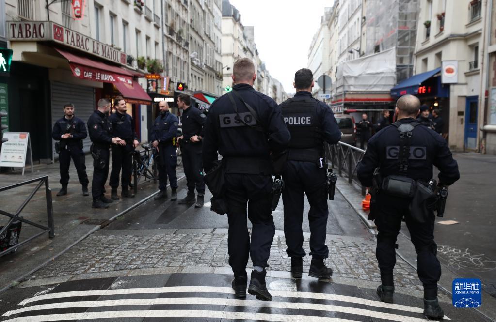 12月23日,警察在法國巴黎發生槍擊事件的街口警戒。