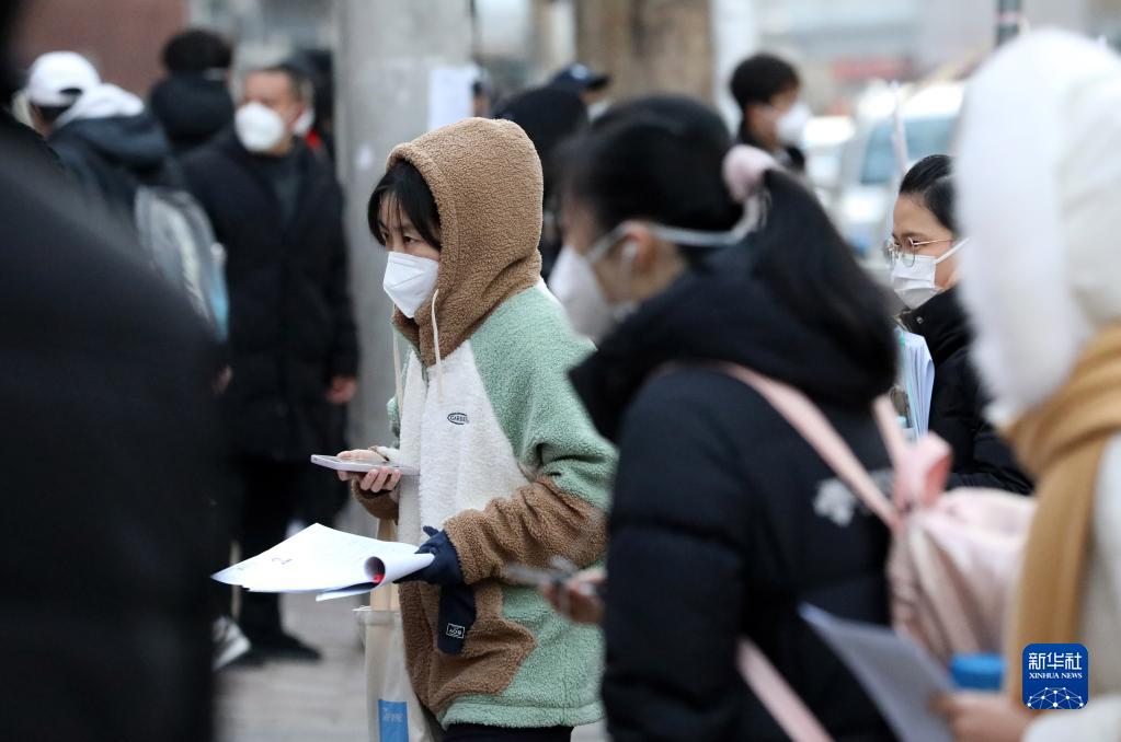 12月24日,在河北省石家莊市第三十八中學考點,考生們有序進入考場。