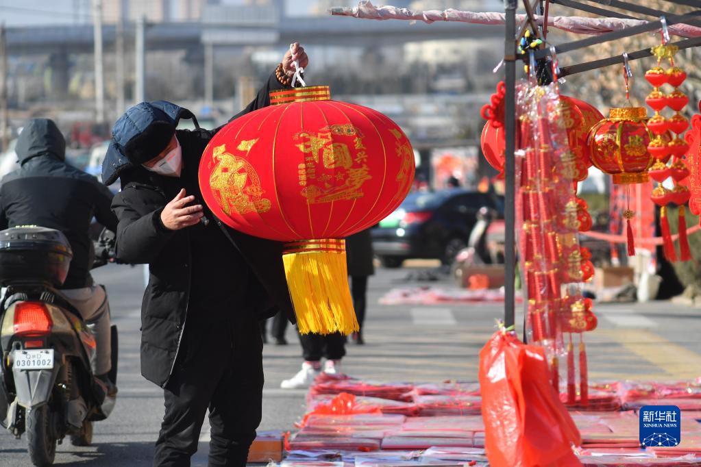 12月24日,在山東省青島市城陽區流亭街道雙埠年貨大集上,市民選購紅燈籠。