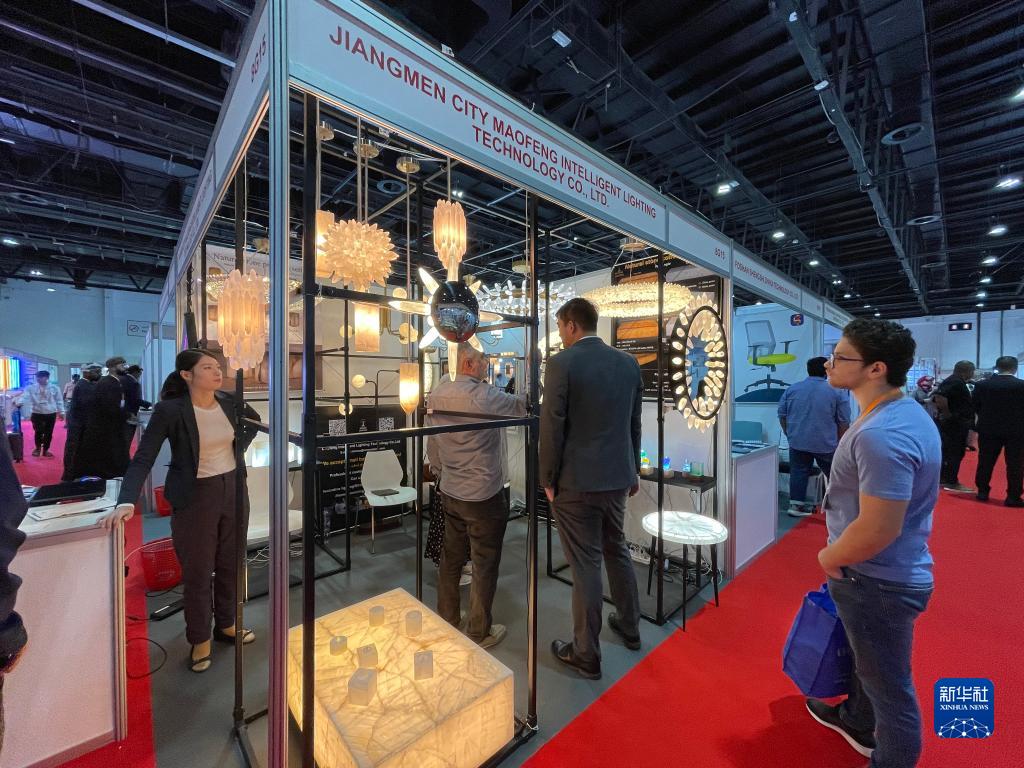 12月20日,在阿聯酋迪拜,采購商在第十三屆中國(阿聯酋)貿易博覽會上觀看展品。