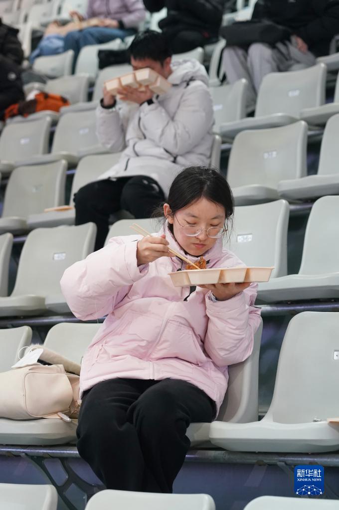 12月24日,在西安電子科技大學(xué)考點(diǎn),考生在體育館內(nèi)分散就餐。