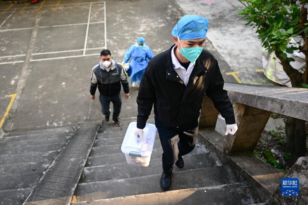12月23日,醫(yī)護人員走進文昌市文城鎮(zhèn)文嶺社區(qū),準備上門為社區(qū)老年人接種新冠疫苗。