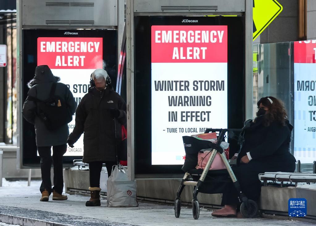 12月24日,人們在美國芝加哥一處公交車站候車。