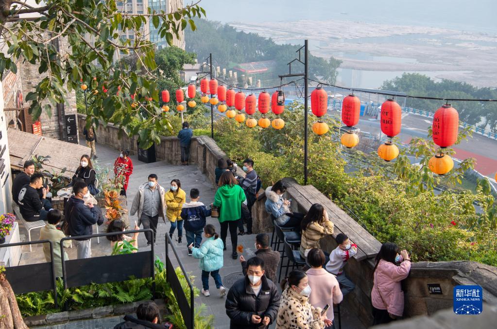 12月24日,市民游客在位于重慶解放碑商圈的著名景點山城巷游覽。