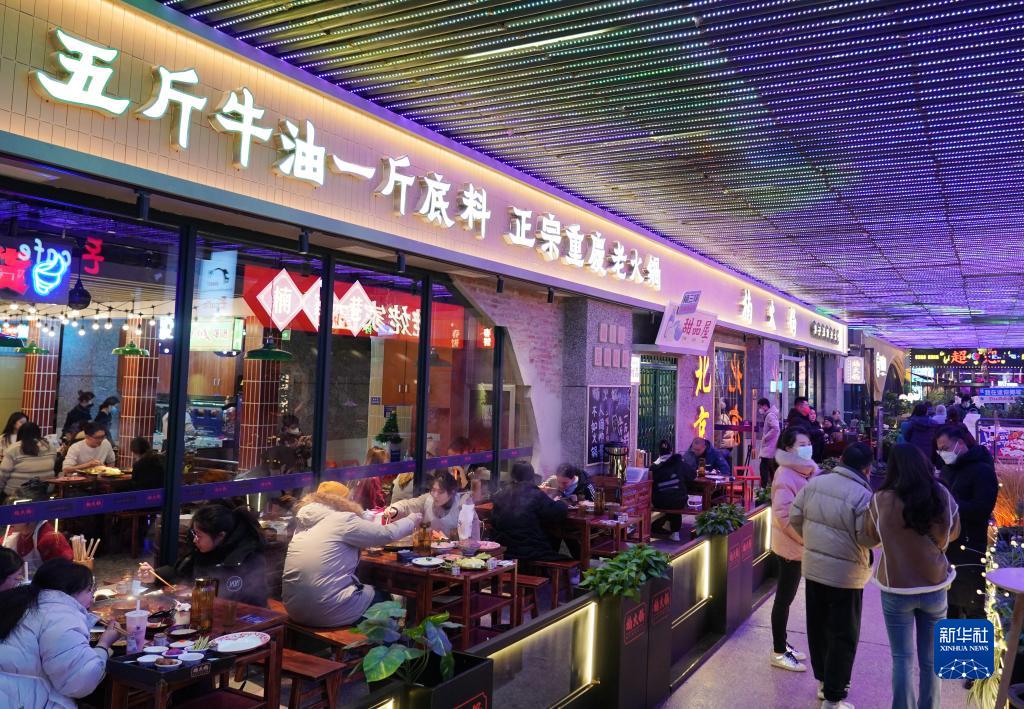 顧客在北京五棵松華熙Live一家餐館用餐(12月25日攝)。