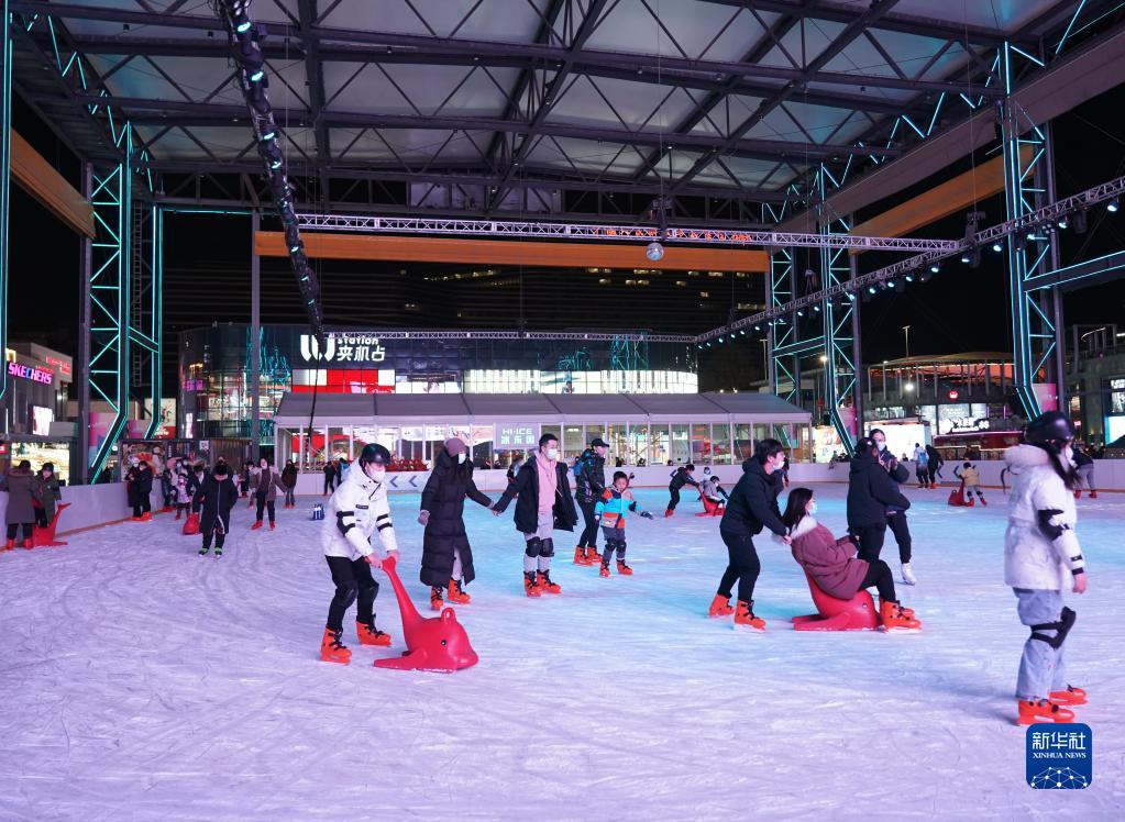 游客在北京五棵松華熙Live體驗(yàn)滑冰(12月25日攝)。