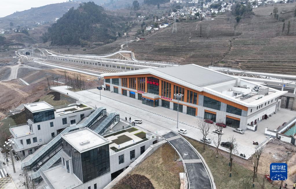 12月20日拍攝的新成昆鐵路甘洛南站(無人機照片)。