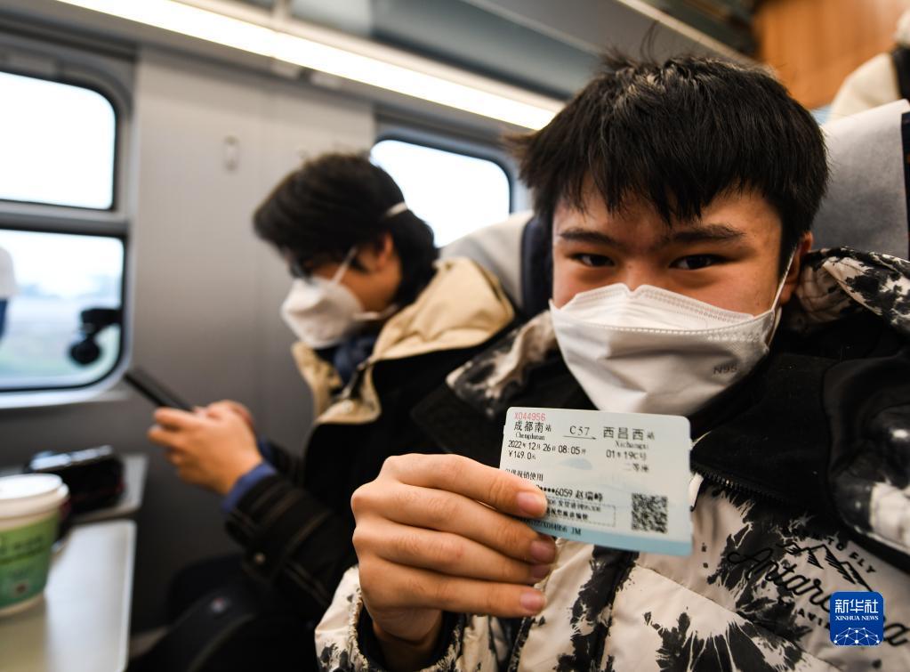 12月26日,乘客展示新成昆鐵路首發(fā)列車車票。