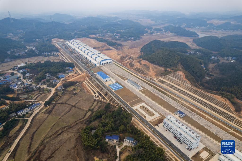 這是12月26日在湖南省長沙市拍攝的渝廈高鐵長沙西動車運用所(無人機照片)。