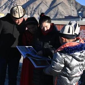 在新疆克孜勒蘇柯爾克孜自治州阿克陶縣布倫口鄉,李文娟(中)和同事們召開專題討論會,學習黨的二十大精神(12月16日攝)。