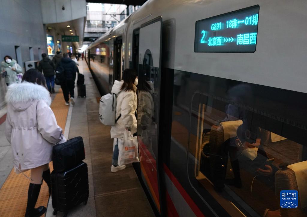 12月26日,旅客在北京西站乘坐G891次列車出行。