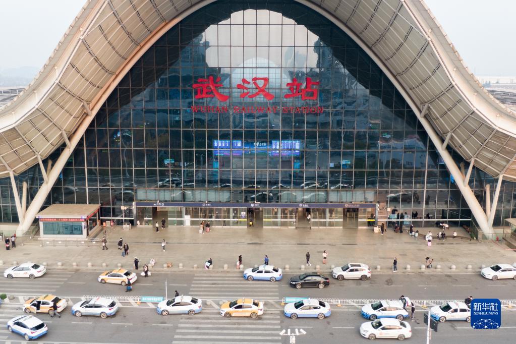12月26日拍攝的武漢站進(jìn)站口(無人機(jī)照片)。