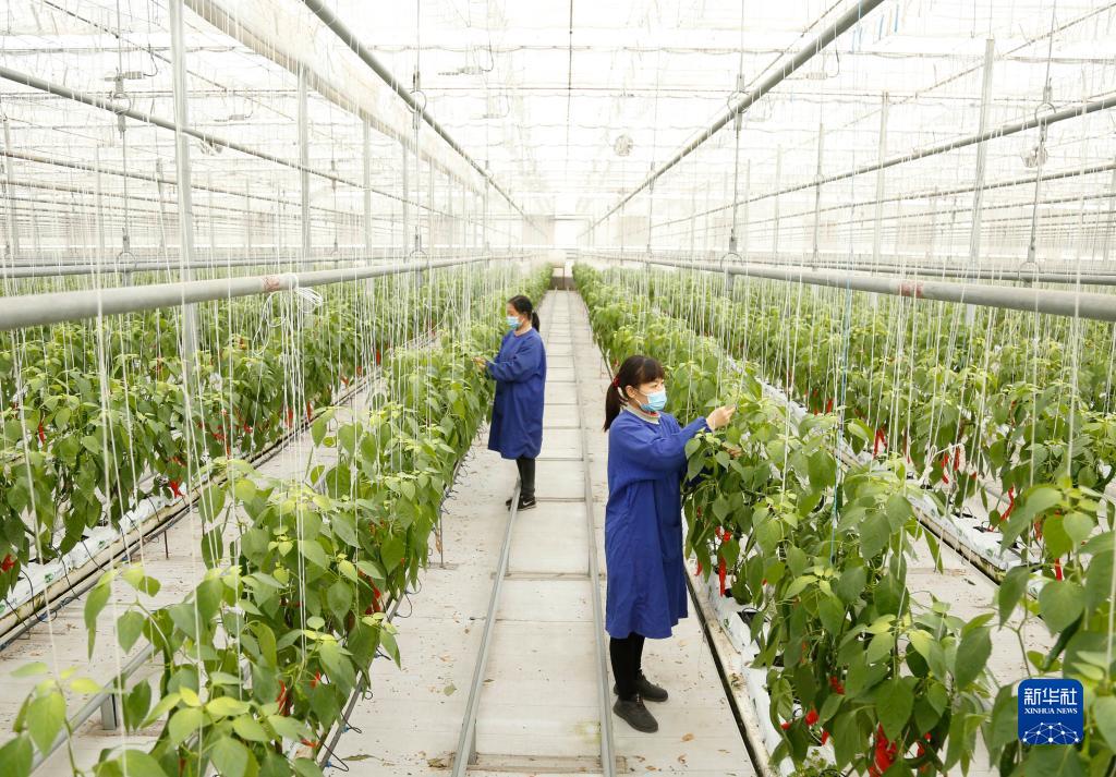 12月27日,在邢臺市南和區賈宋鎮一家現代農業園區,工人在管護辣椒。