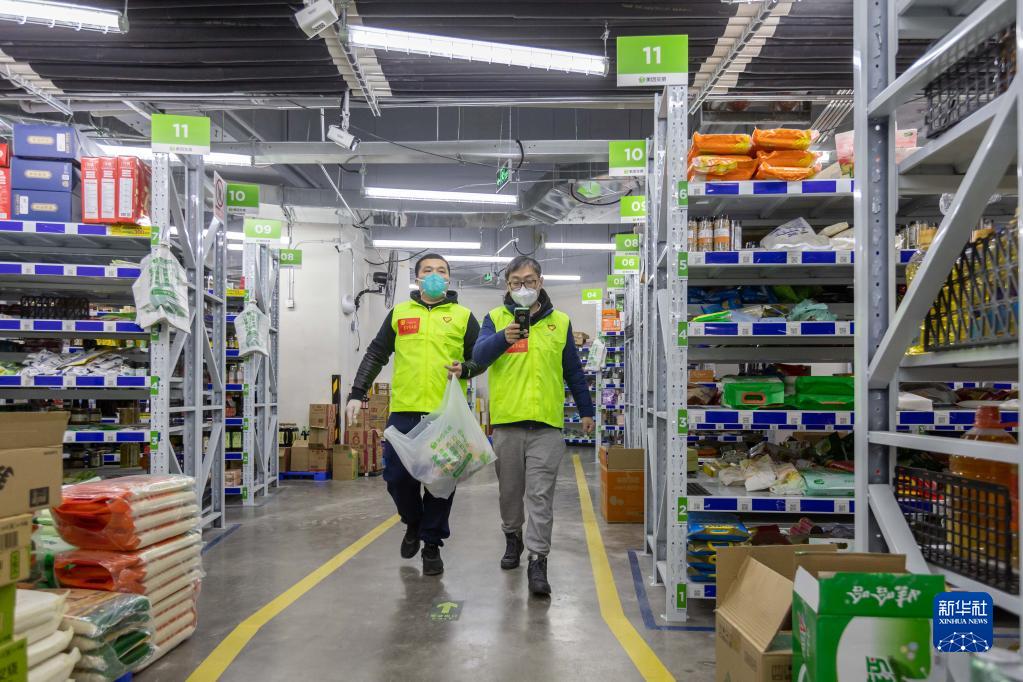 12月27日,在上海市徐匯區(qū)的美團(tuán)買菜前置倉(cāng),青年突擊隊(duì)隊(duì)員進(jìn)行分揀工作。