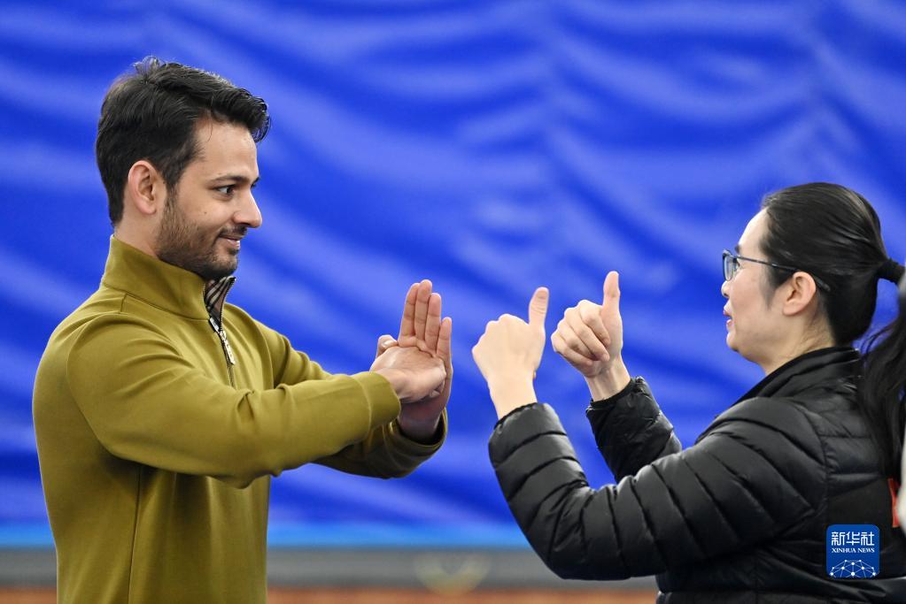 在天津市西青區(qū)精武鎮(zhèn)精武會館,穆罕默德·納比爾(左)得到霍靜虹的贊賞(12月25日攝)。