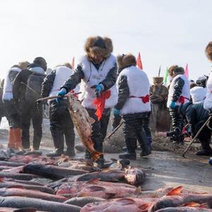 當(dāng)日,“2022黑龍江冷水魚·冬捕季”冬捕大典在黑龍江省牡丹江市鏡泊湖西湖岫舉行,頭網(wǎng)捕撈出23.8萬斤魚,現(xiàn)場還舉行了“頭魚拍賣”、傳統(tǒng)秧歌表演、燉魚品鑒等活動。
