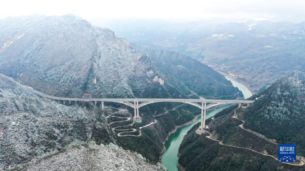 這是12月28日拍攝的貴陽至黃平高速公路貴定互通連接線甘溪特大橋(無人機照片)。
