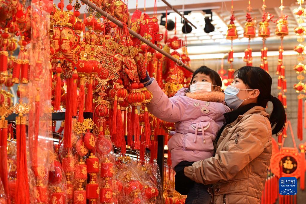 12月29日,人們在河北省石家莊市一家年貨市場選購年貨。