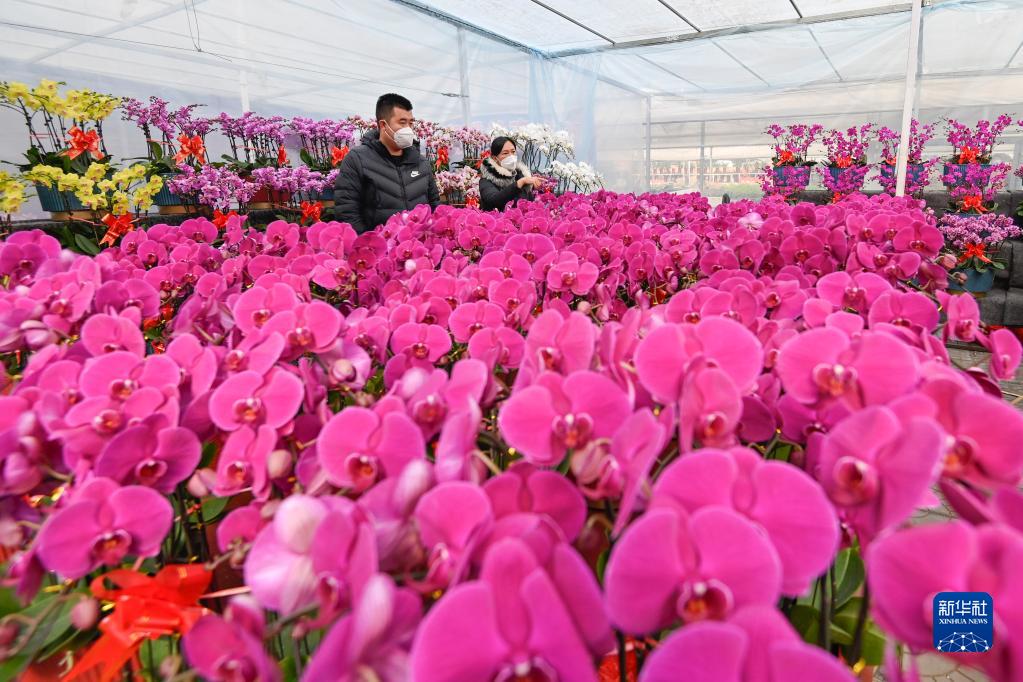 元旦、春節臨近,人們紛紛選購花卉、瓜果、春聯等年貨,迎接佳節。