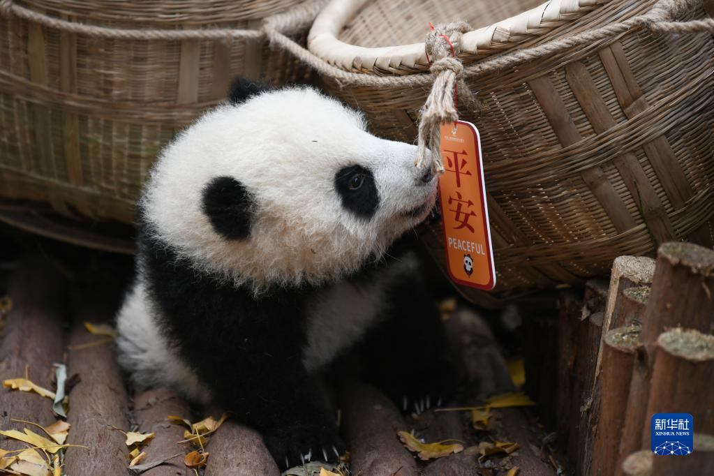 元旦將至,成都大熊貓繁育研究基地內13只2022年新生大熊貓寶寶集體亮相,為游客們送上新年祝福。