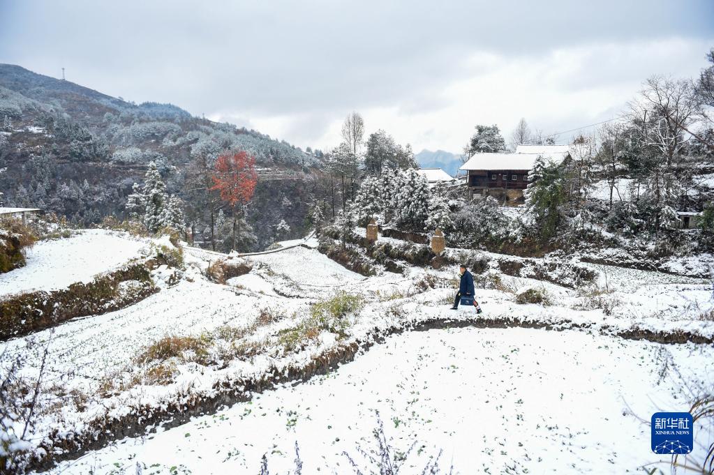 12月28日,劉開福雪后走在探望空巢老人的途中。