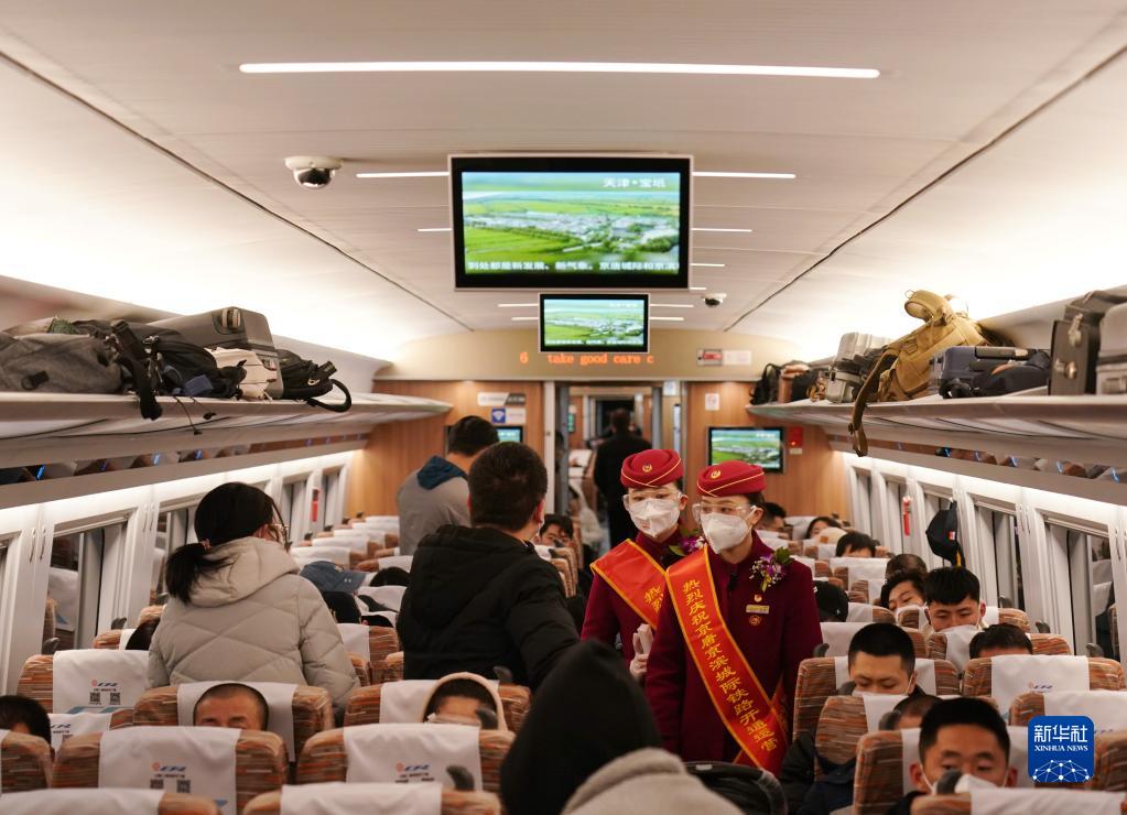 12月30日,乘務(wù)員在北京開往秦皇島的G8801次列車上巡視。
