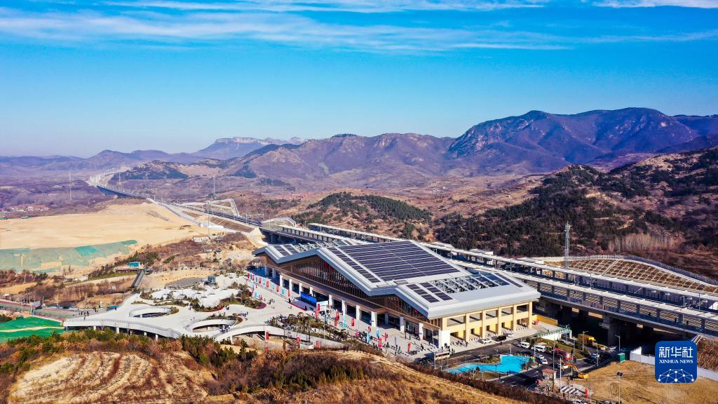 12月30日拍攝的濟(南)萊(蕪)高鐵雪野站(無人機照片)。