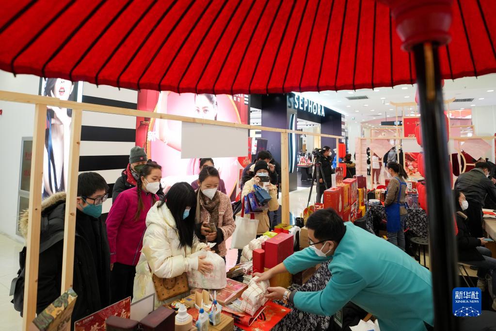 12月30日,在北京年貨節(jié)啟動活動的年貨市集區(qū),顧客在購買年貨商品。