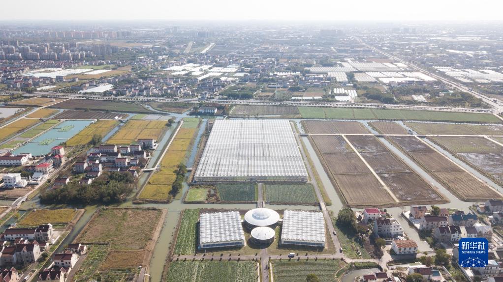 位于上海浦東新區(qū)宣橋鎮(zhèn)腰路村的清美數(shù)字化蔬菜基地(12月7日攝,無(wú)人機(jī)照片)。