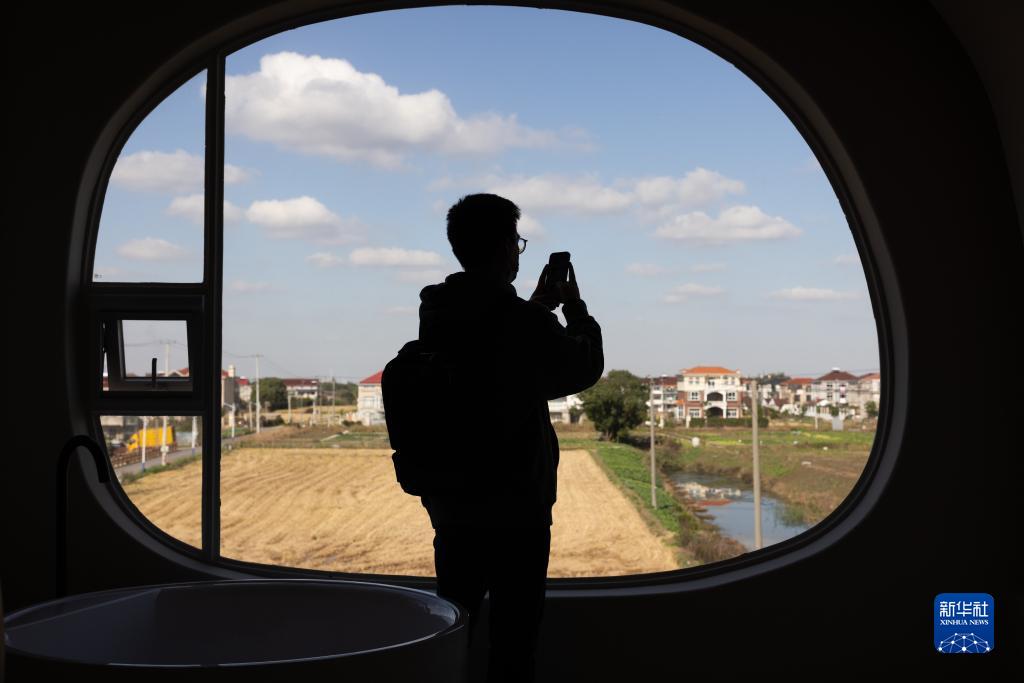在上海浦東新區(qū)宣橋鎮(zhèn)腰路村一處在建民宿,從窗口望出去可見鄉(xiāng)村風(fēng)光(12月7日攝)。