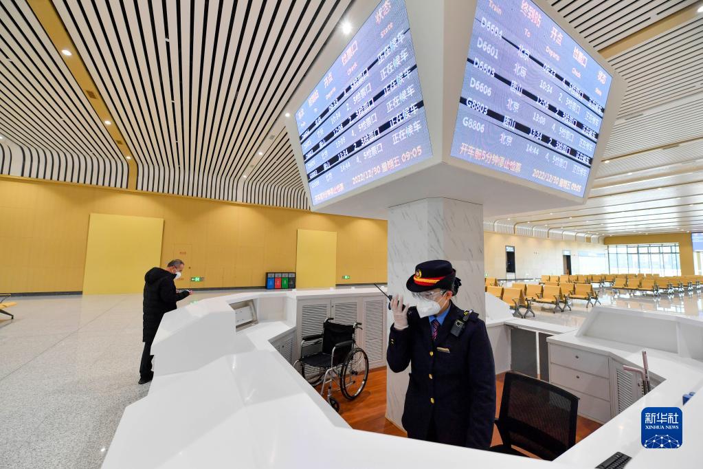12月30日,工作人員在寶坻站問(wèn)詢(xún)臺(tái)工作。新華社記者 孫凡越 攝