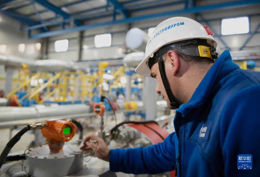 12月18日,在俄羅斯伊爾庫茨克州,工作人員在科維克塔天然氣氣田內(nèi)巡視設備。